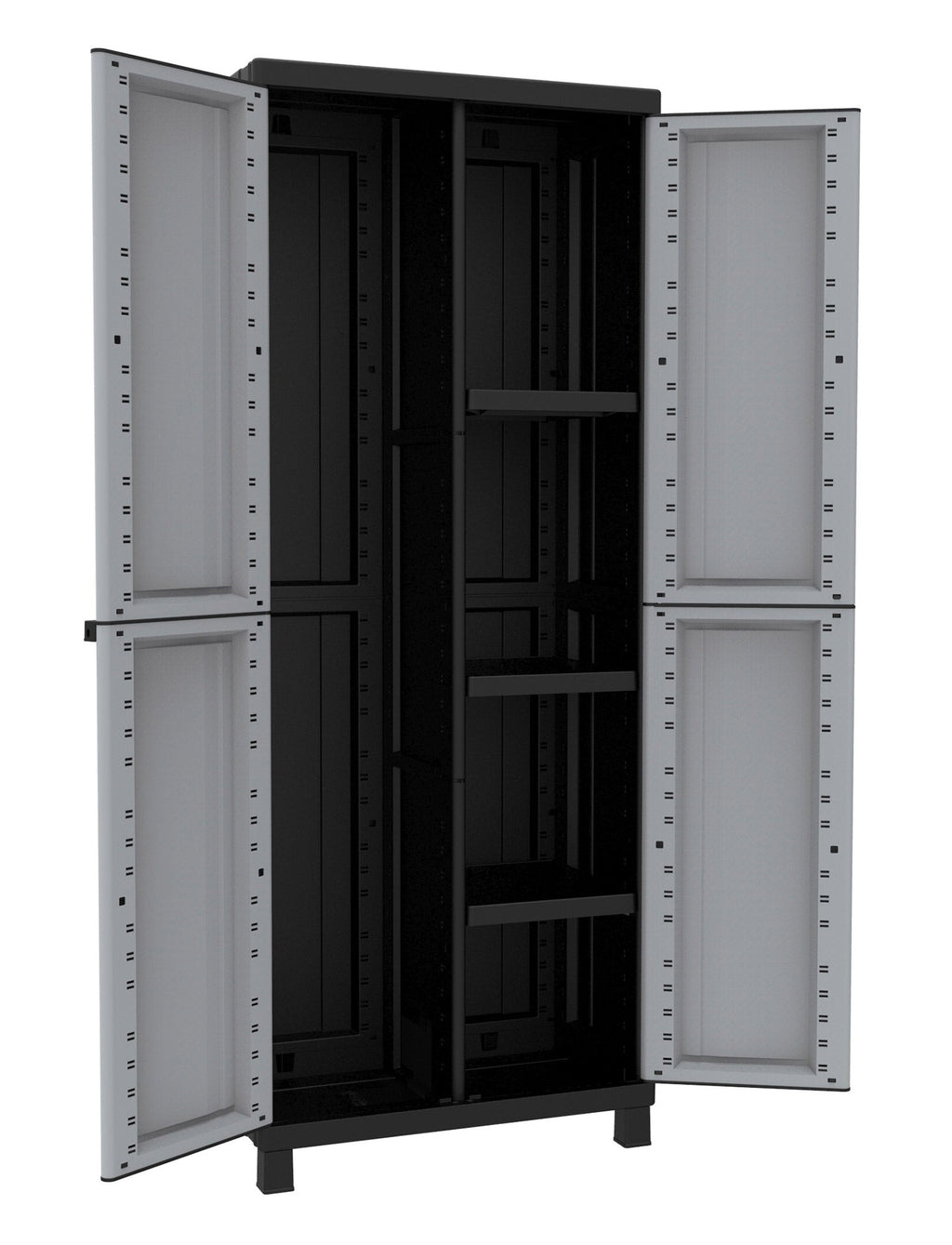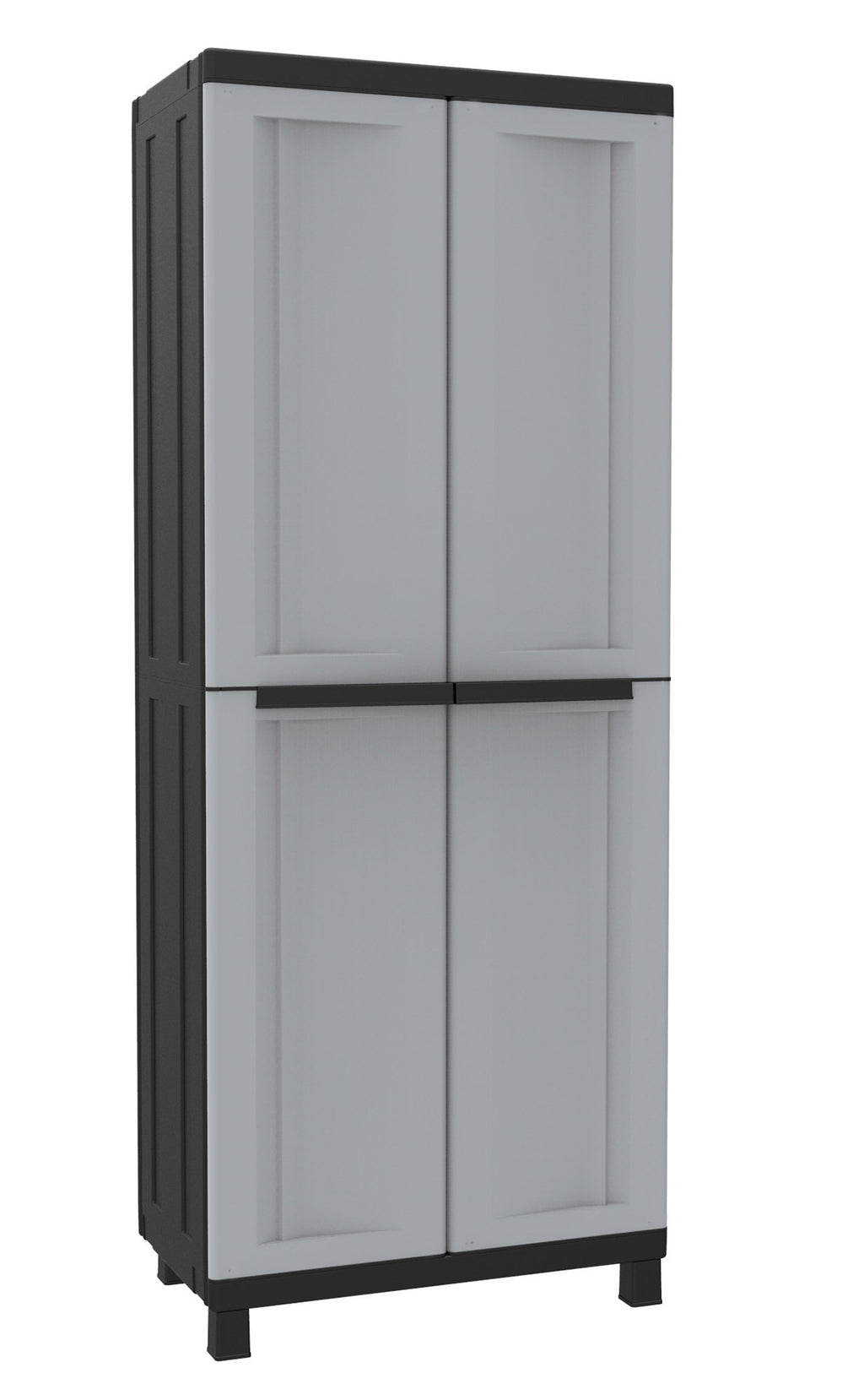 Armadio Portascope Modulare da Esterno 68x39x170 cm 2 Ante 4 Ripiani in Polipropilene Twist Grigio e Nero