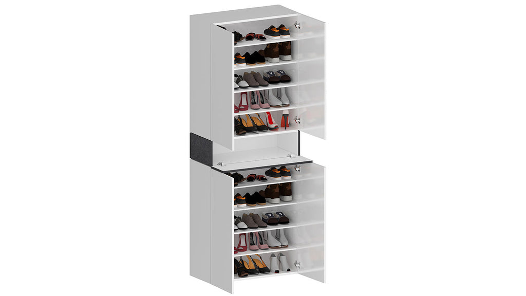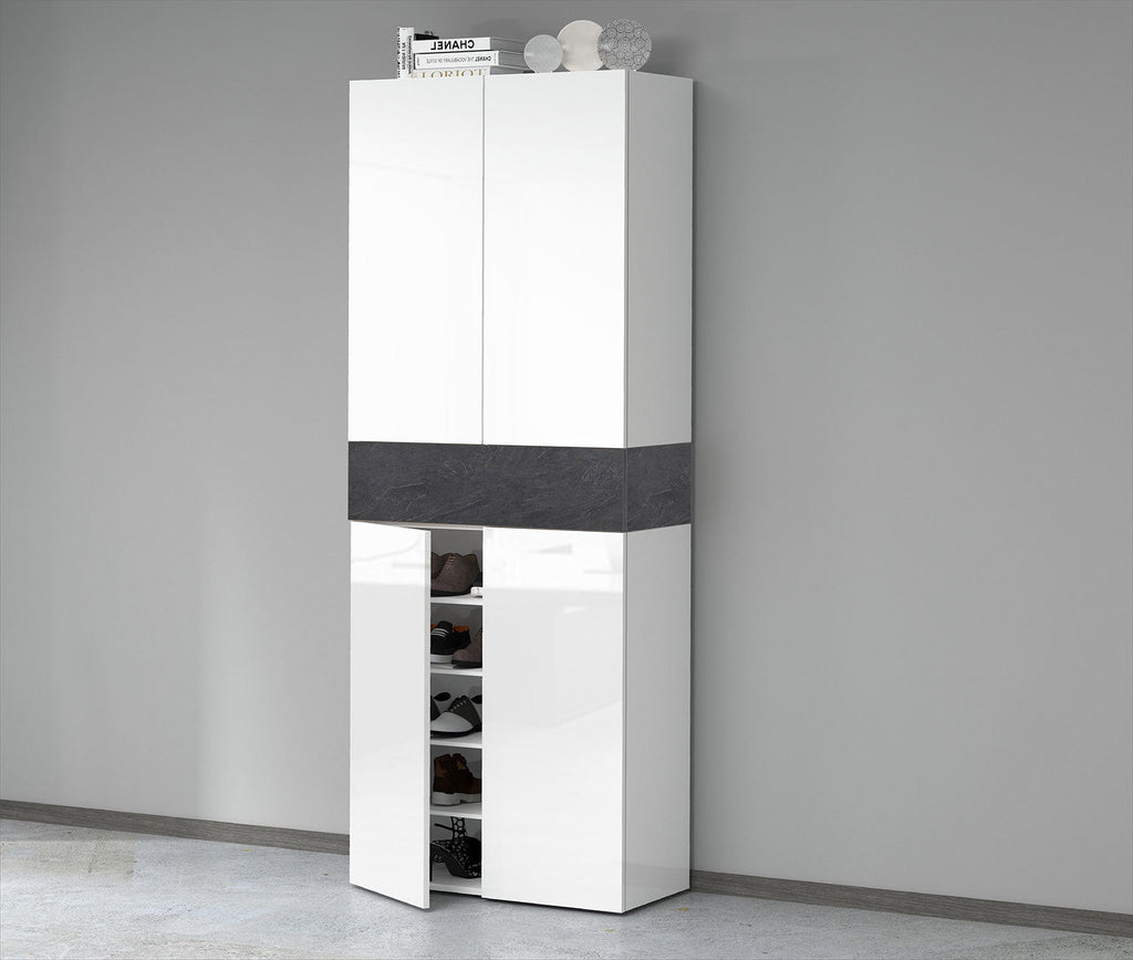 Armadio Scarpiera 4 Ante e 1 Ripiano a Ribalta 76x35x200 cm Savona 4A 1R Bianco Opaco/Grigio Ardesia