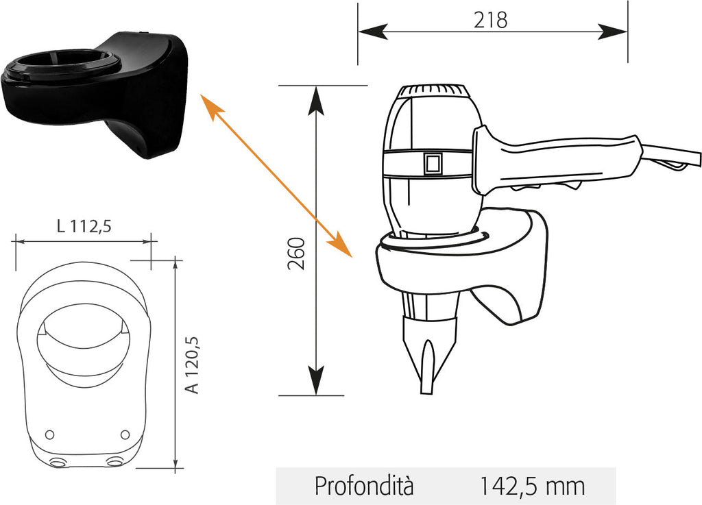 - Cavo a spirale tra la base a muro e il phon, lunghezza 60/120 cm