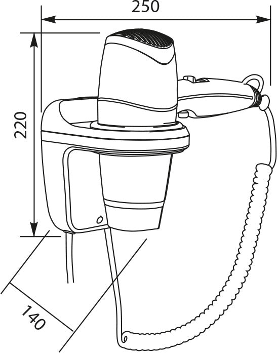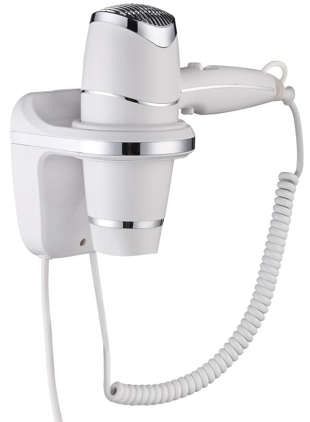 Top di gamma tra gli asciugacapelli dedicati agli alberghi, dispone di 3 regolazioni per velocità e temperatura dell'aria, con assorbimento massimo 1800W.
