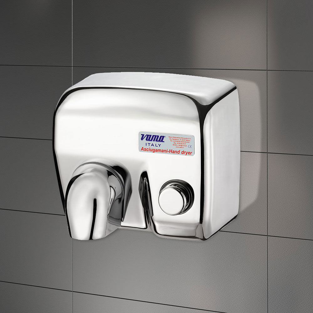 Asciugamani Elettrico Antivandalo con Pulsante 2400W Vama Ariel LP Acciaio Inox Lucido