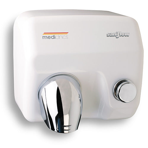 Asciugamani Elettrico Aria Calda a Pulsante in Acciaio Bianco Mediclinics Saniflow E05