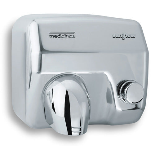 Asciugamani Elettrico Aria Calda a Pulsante in Acciaio Lucido Mediclinics Saniflow E05C