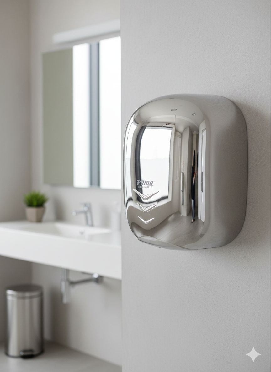 Asciugamani Elettrico con Fotocellula 1100W Vama Stream Dry UV Acciaio Inox Lucido