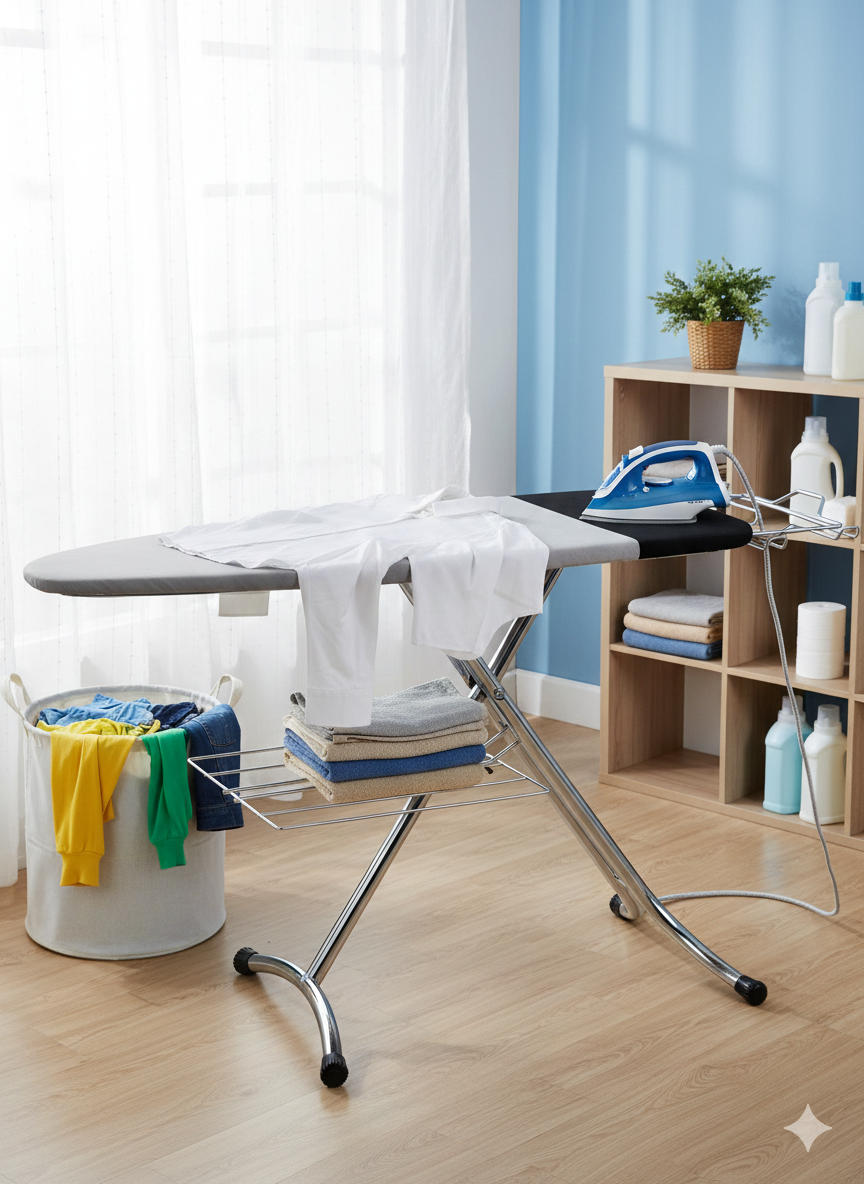 La sicurezza è al primo posto: l'area ignifuga ti permette di appoggiare il ferro da stiro caldo senza pensieri. Grazie ai due sistemi di blocco, puoi dire addio a chiusure accidentali. Regola l'altezza con la comoda leva a 8 posizioni (da 54 a 93 cm) per trovare la posizione perfetta.