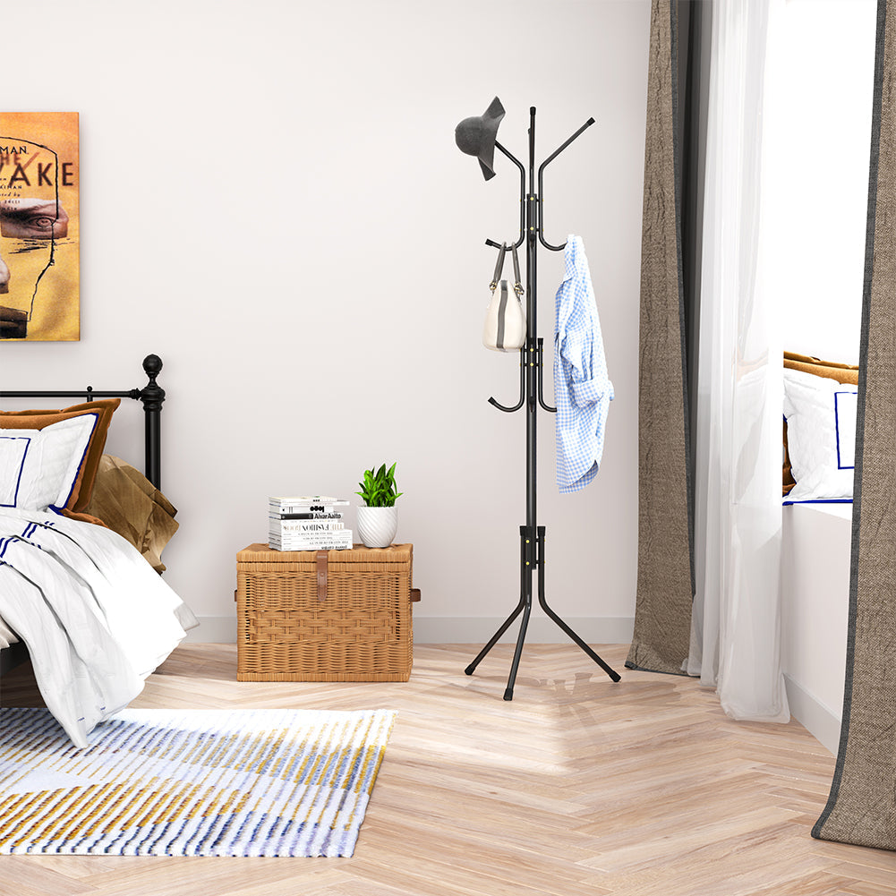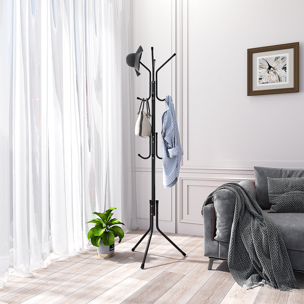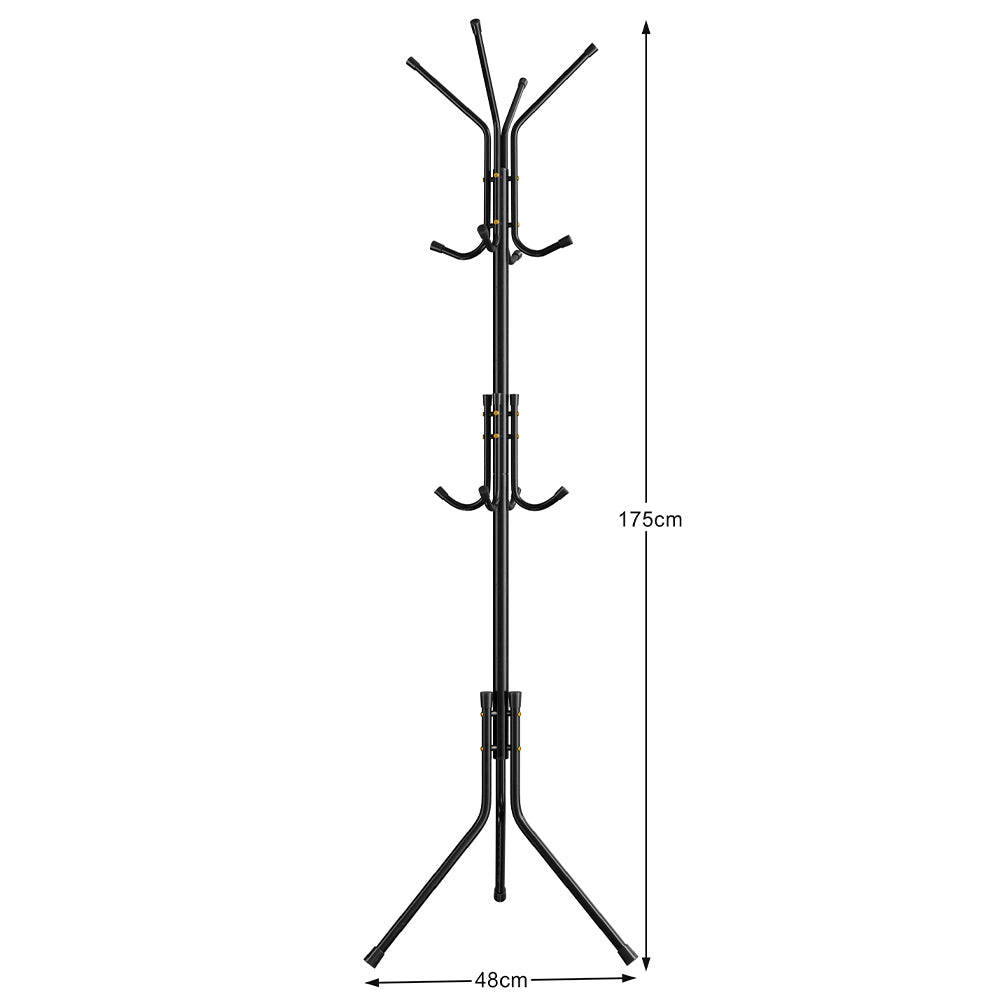 Attaccapanni da Terra Salvaspazio 12 Ganci Stand Appendiabiti a Piantana Nero