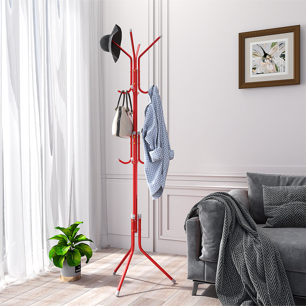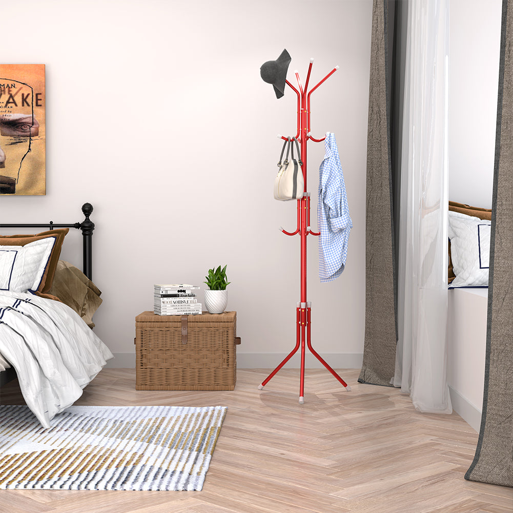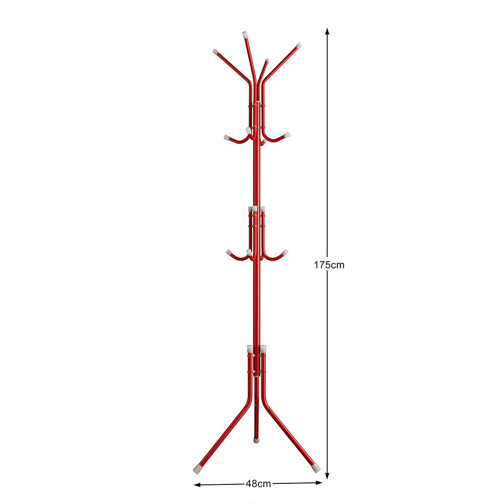 Attaccapanni da Terra Salvaspazio 12 Ganci Stand Appendiabiti a Piantana Rosso