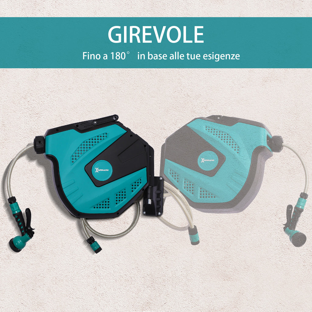 Avvolgitubo Automatico a Parete 44x22.5x41 cm con 7 Modalità di Irrigazione in Plastica Nero e Verde