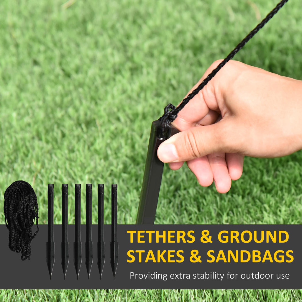 - 6 picchetti, 3 corde e 2 sacchetti di sabbia per dare stabilità