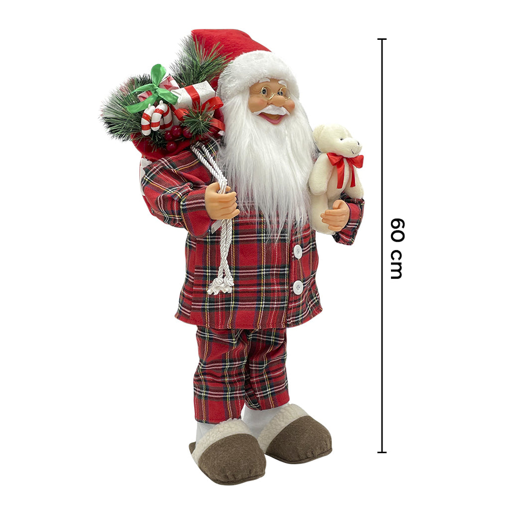 Babbo Natale Pigiama Rosso Scozzese H60 cm con Mini Lucciole e Suoni
