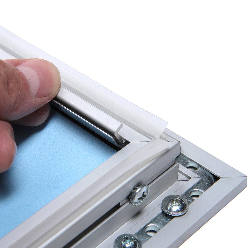- Fondo in materiale plastico con clip di fissaggio interna per poster.