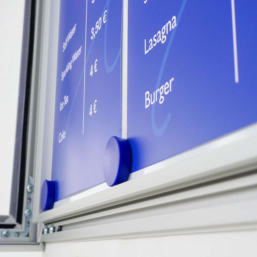 La bacheca per esterni è realizzata in alluminio anodizzato silver, che garantisce resistenza e durata nel tempo. Il fondo è in acciaio laccato magnetico e scrivibile, ideale per attaccare fogli o note importanti. L'anta è in policarbonato trasparente e si apre a battente grazie alla serratura con chiavi in dotazione. Il pannello di intestazione può essere personalizzato con il logo o rimosso, mentre il kit per il fissaggio a parete è incluso e comprende viti e tasselli. Il formato è 2xA4 e le dimensioni sono 51,5x48,7x2,3 cm.