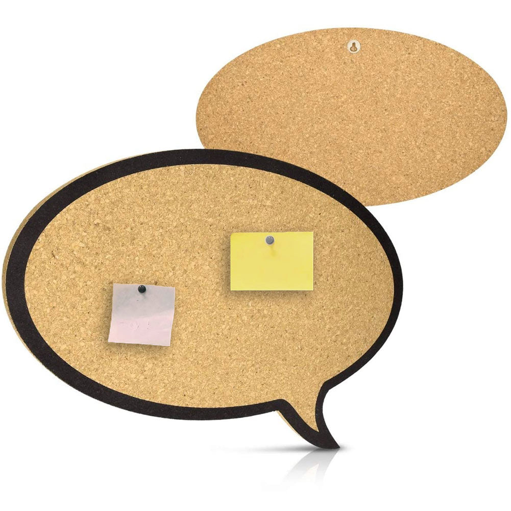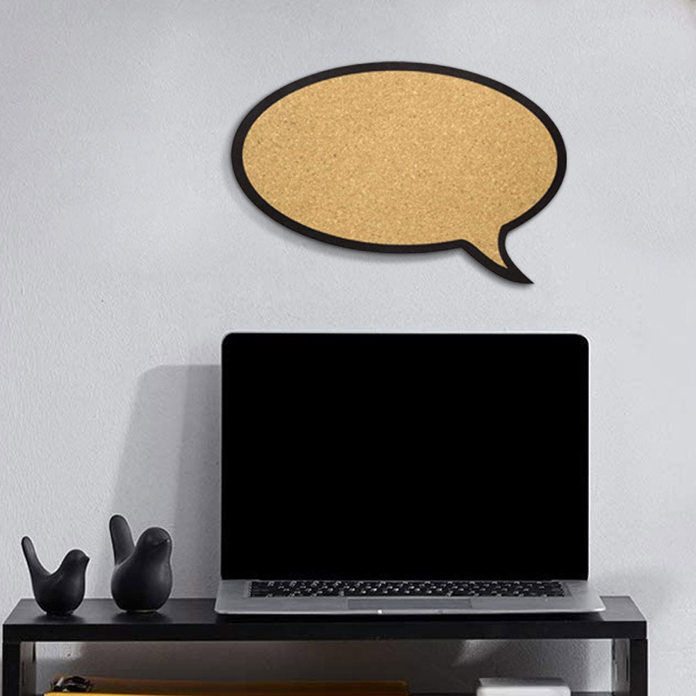 1 x Bacheca in Sughero Forma Fumetto Tonda con Cornice Nera da Parete 44x29x1 cm
