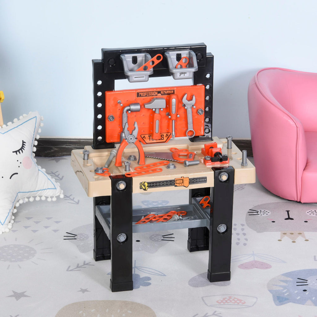 Banco da Lavoro con 64 Attrezzi per Bambini Arancia e Nero