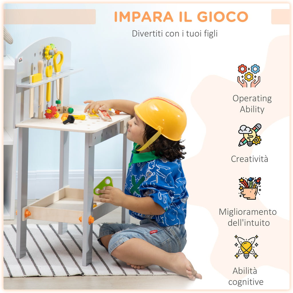 Banco da Lavoro Giocattolo con 31 Accessori 53x31x77 cm in Legno Grigio