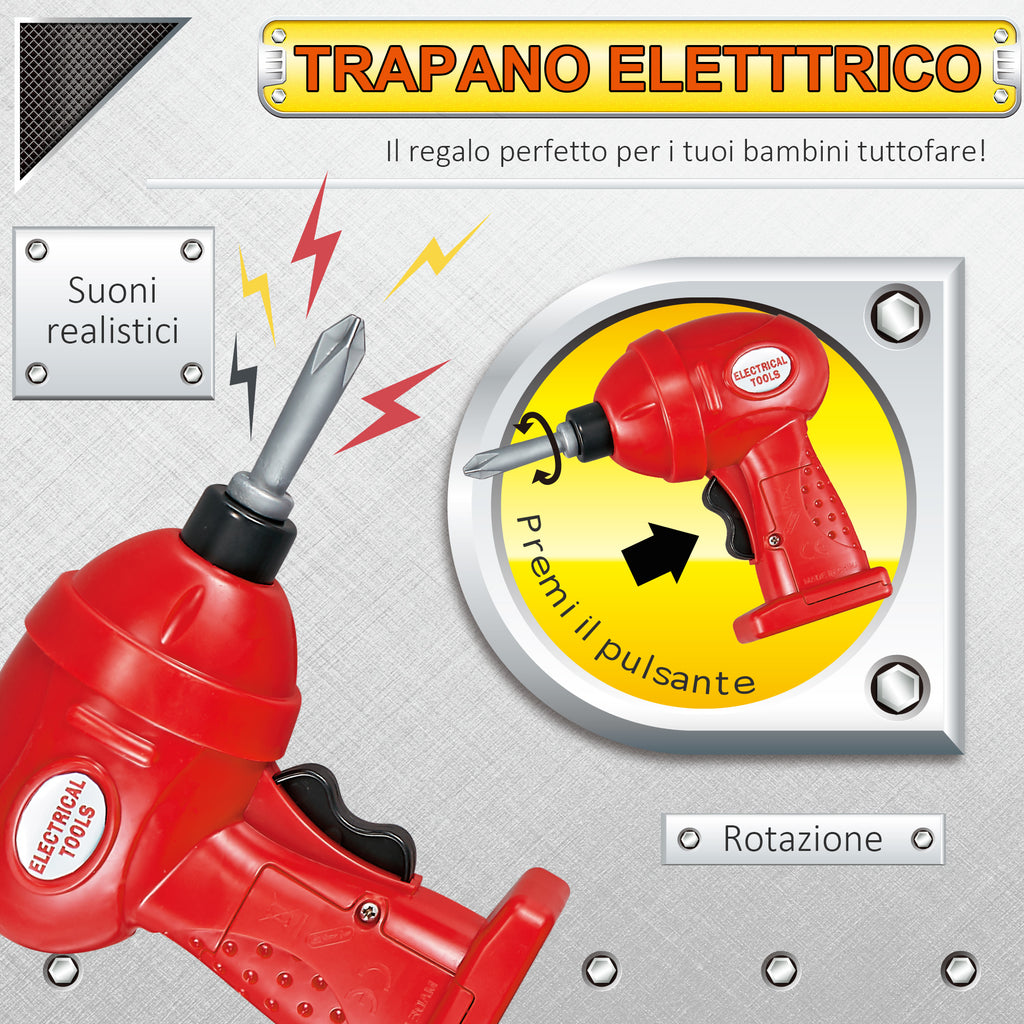 - Il trapano elettrico con suono realistico funziona premendo il pulsante. La velocità di rotazione lenta garantisce sicurezza