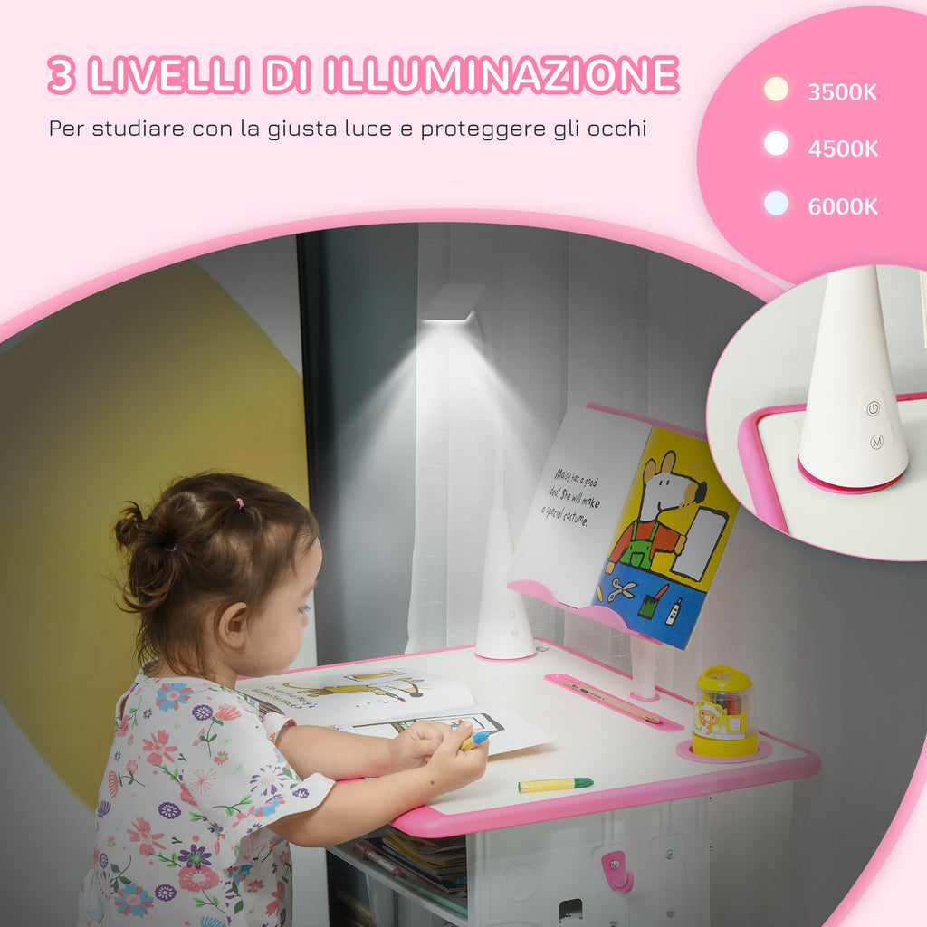 Banco Scuola con Sedia per Bambini con Lampada LED e Leggio Rosa