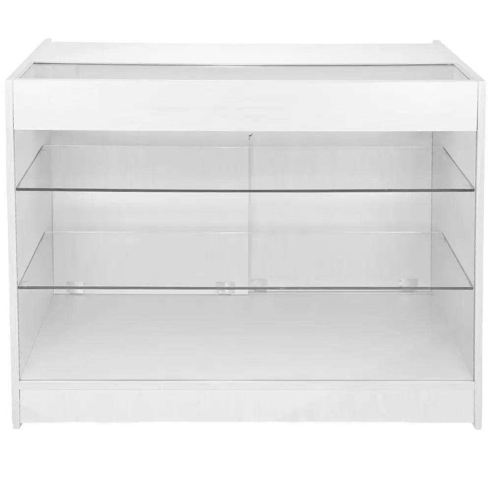 Bancone Espositore 120x90x60 cm per Negozio con Vetrina Ripiani in Vetro Bianco Brillante