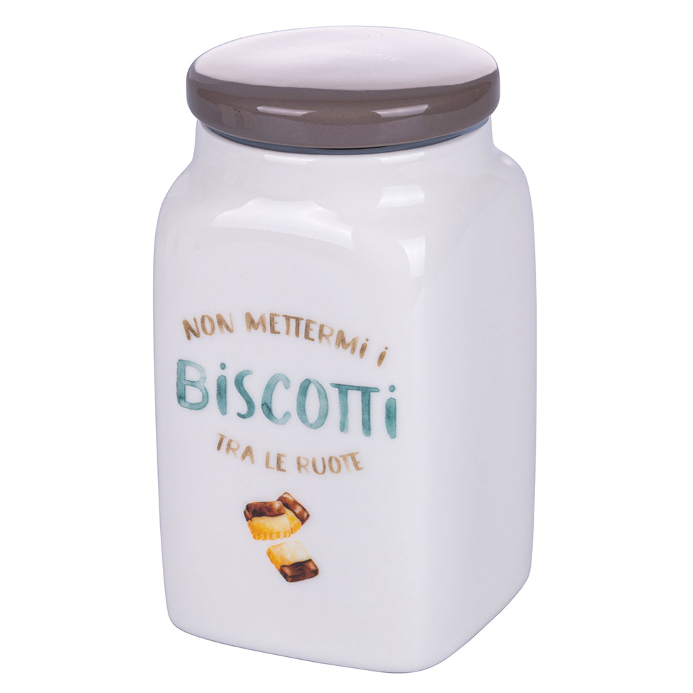 Barattolo Biscotti 9,5x9,5x18 cm in New Bone China VdE Tivoli 1996 Le Travisate Bianco
