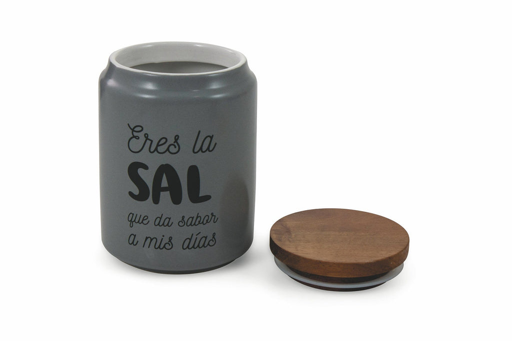 Barattolo Sale con Scritta Ø10,5x15 cm in Gres con Coperchio in Bambù VdE Tivoli 1996