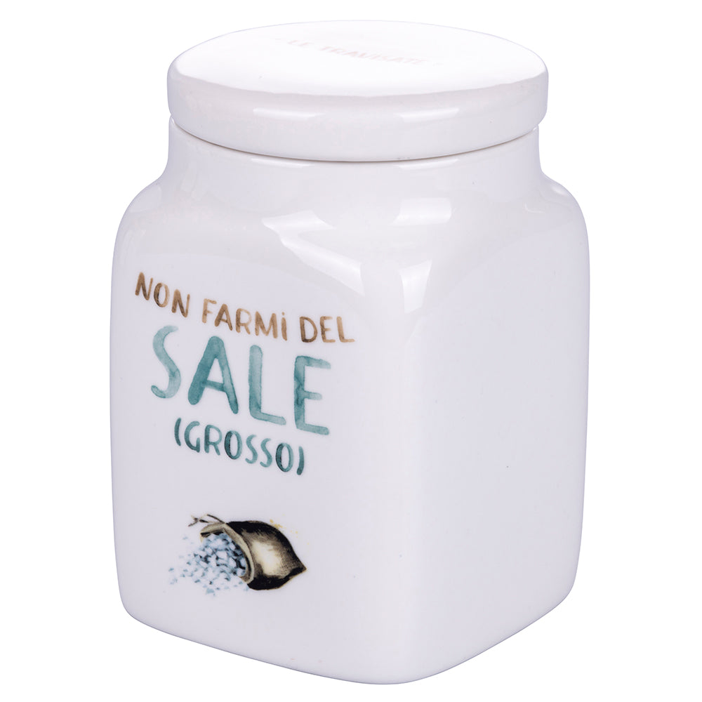 Barattolo Sale Grosso 9,5x9,5x14,5 cm in New Bone China VdE Tivoli 1996 Le Travisate Bianco
