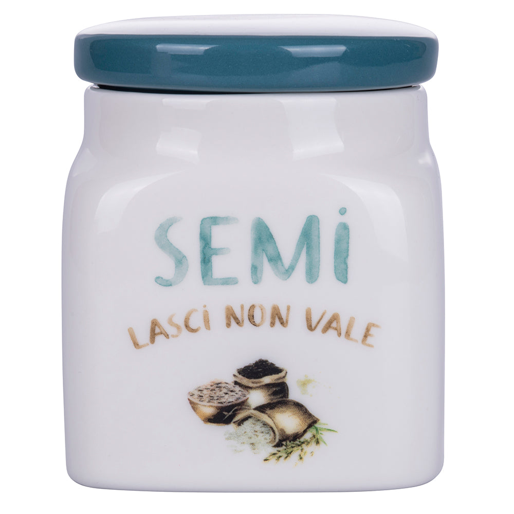 Barattolo Semi 9,5x9,5x12 cm in New Bone China VdE Tivoli 1996 Le Travisate Bianco