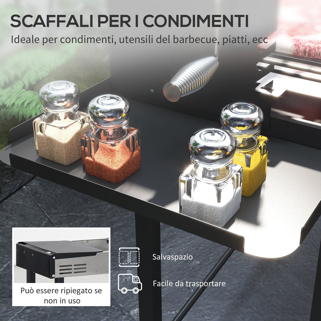 - Barbecue da esterno con mensole laterali pieghevoli e paravento rimovibile