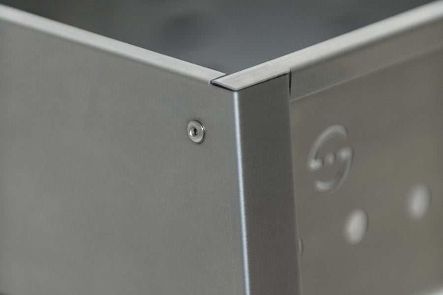 - Pareti con profilo antitaglio e traforate per consentire una maggiore ventilazione dell'aria che autoalimenta la brace