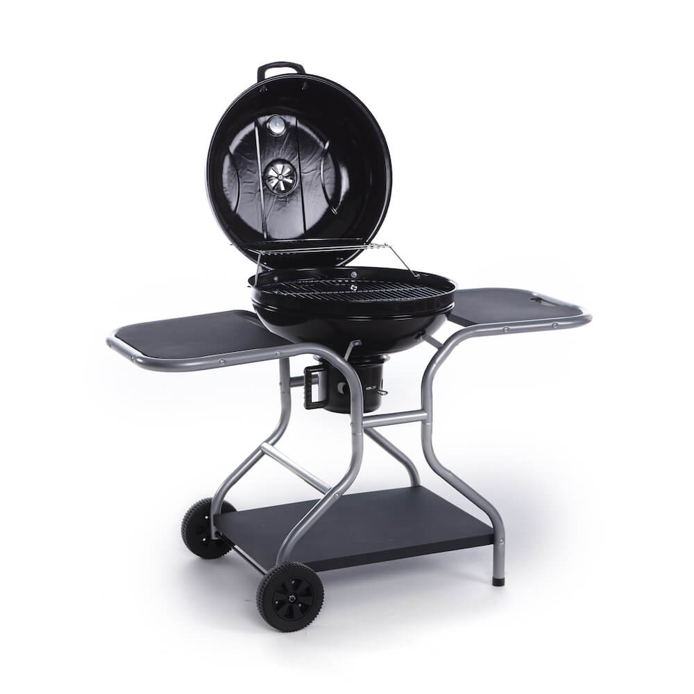 Barbecue a Carbone Carbonella In Acciaio con 2 Piani di Appoggio Termometro Carrello e Raccoglitore Olio Taddei Round 61