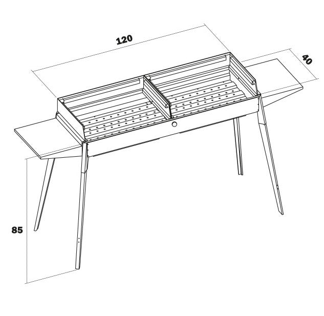 Dotato di due aree di cottura completamente separate tra loro con una parete mobile per il controllo della brace. Oltre a questo, ogni area dispone di una paratia anti-vento a due livelli di cottura e un cassetto per la raccolta della cenere.