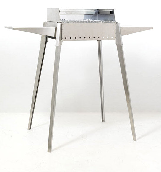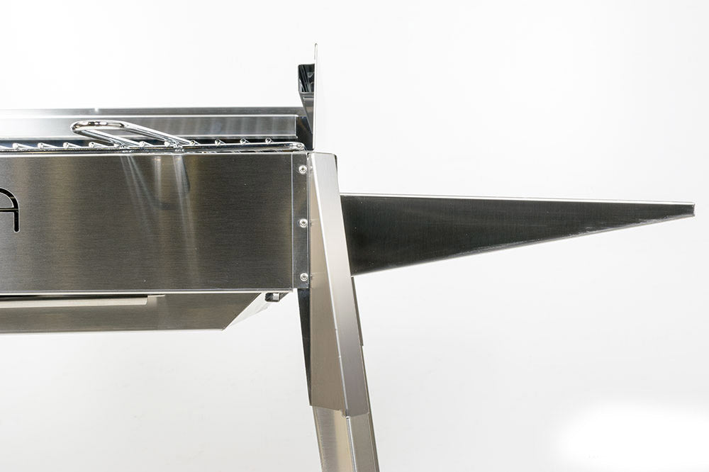 Barbecue a carbonella portatile LISA Etna Mini realizzato totalmente in acciaio inossidabile.