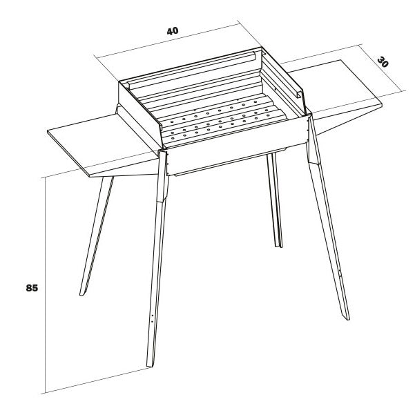 Il montaggio delle gambe, semplice e veloce, con il sistema di innesto a baionetta che non richiede attrezzi. Oltretutto le gambe estraibili e le ridotte dimensioni lo rendono un barbecue a carbonella portatile. Inoltre è facilmente smontabile, si può riporre comodamente in spazi ridotti quando non utilizzato. Per di più la particolare forma dei sostegni angolari consente di utilizzare il barbecue Etna anche senza gambe, posizionato su un piano dappoggio o allinterno di un camino. Completano larticolo due ampie mensole laterali rimovibili.