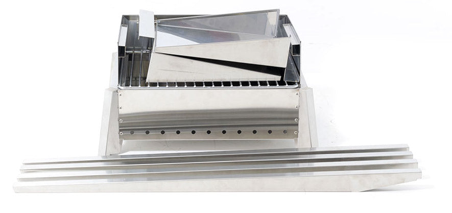 Linnovativo design a doppia parete crea unintercapedine per la circolazione dellaria che, infatti attraverso i fori di ventilazione, aiuta l'alimentazione della brace. Dotato di una paratia anti-vento a due livelli di cottura e di un doppio fondo che raccoglie e facilita leliminazione della cenere. Profilo anti-taglio: tutte le estremità sono lisciate, ripiegate e levigate per garantire la massima sicurezza.