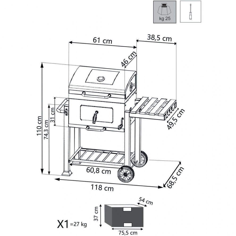 Barbecue a Carbonella 118x56x110 h cm in Acciaio Antracite