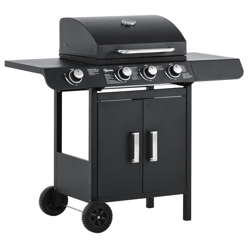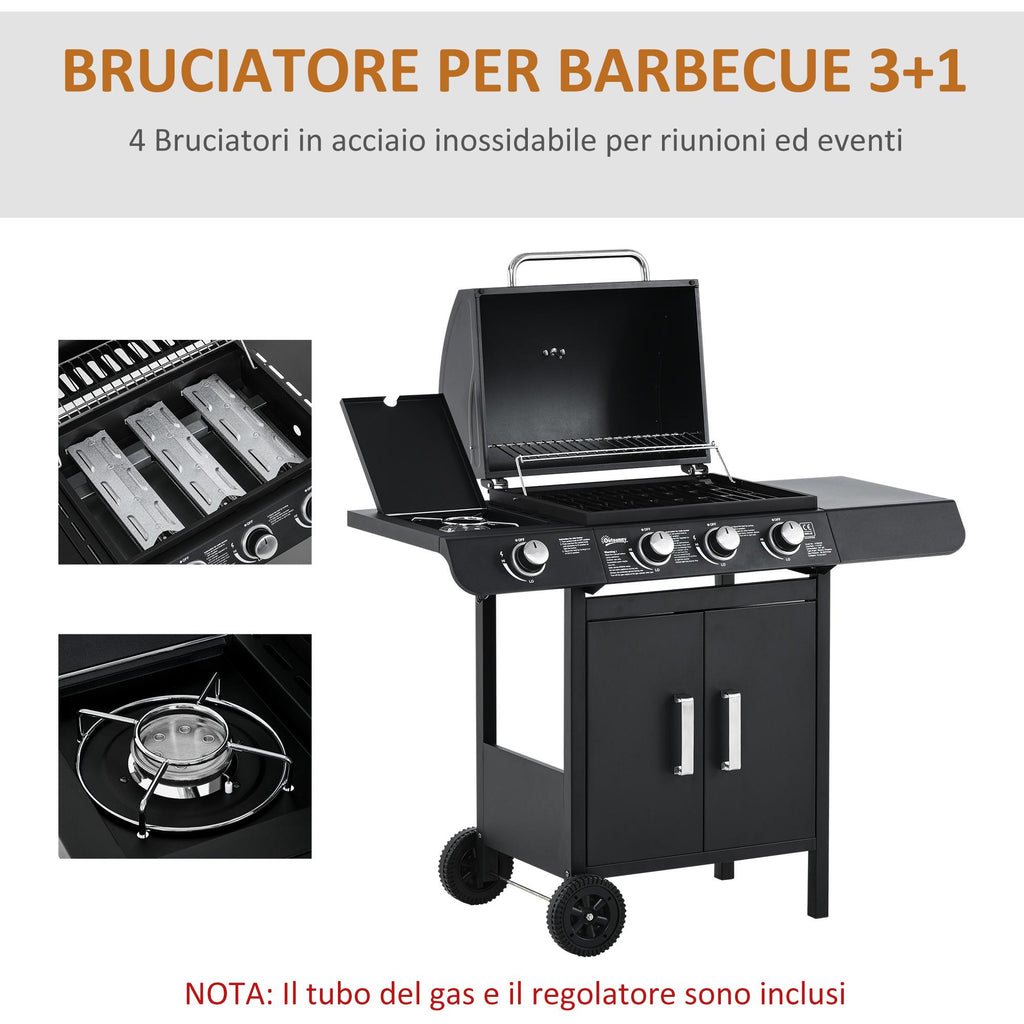 Barbecue a Gas 4 Fuochi 110x50x100 cm in Metallo Nero