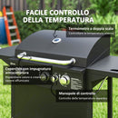 Barbecue a Gas con Bruciatori Indipendenti Coperchio con Termometro e Tavolino Laterale Nero