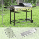 Barbecue a Gas con Piastra e Fornello Coperchio con Termometro Regolatore e Tubo Inclusi Nero
