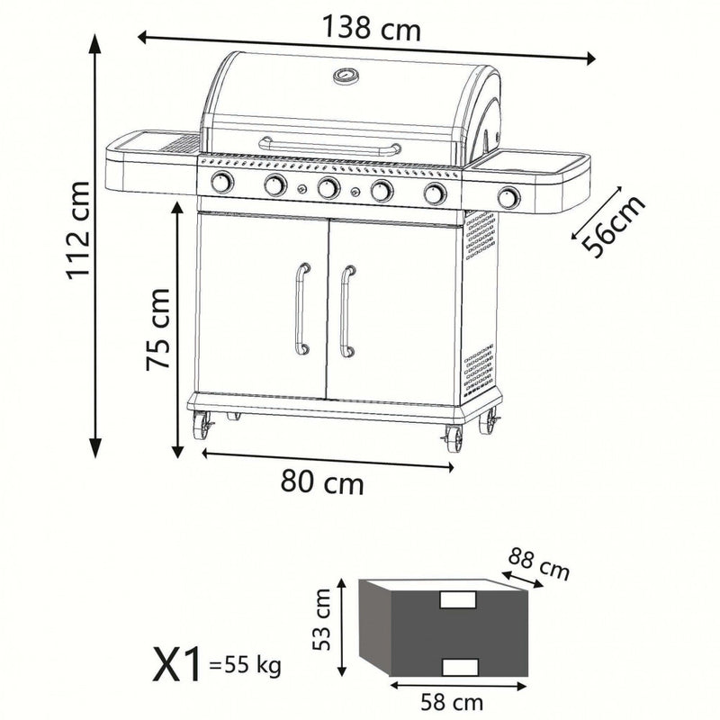 Barbecue a Gas GPL Davis 5 Fuochi + 1 con Fornello Laterale 138x55,5x112 h cm in Acciaio Grigio