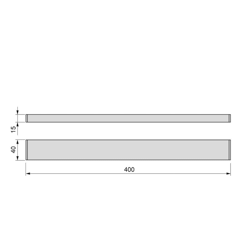 - Dimensioni: lunghezza 40cm, larghezza 4cm, spessore 1,5cm.