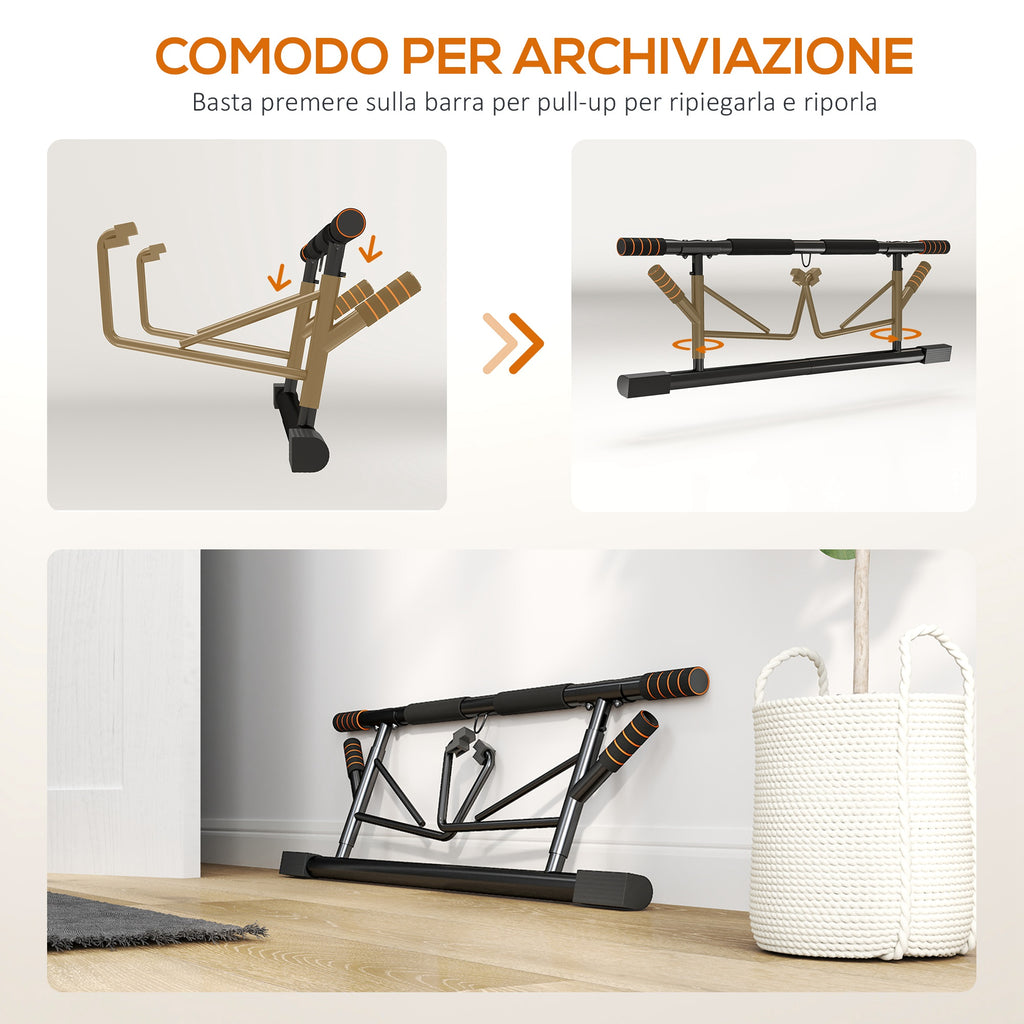 Barra per Trazioni e Flessioni con Prese Imbottite 100x50x27 cm in Acciaio e HDR Arancione e Nero