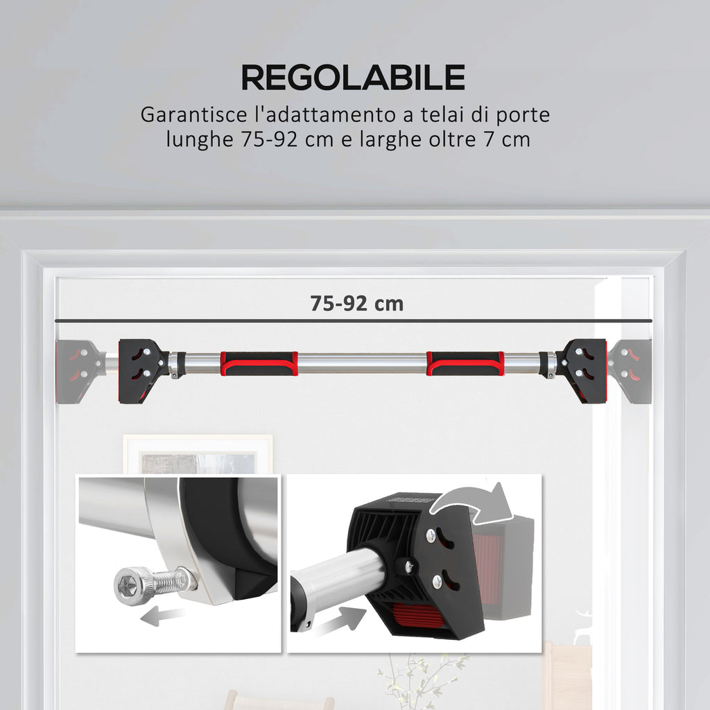 Barra per Trazioni Regolabile 75-92x10x7 cm con Impugnature Antiscivolo Rosso e Nero