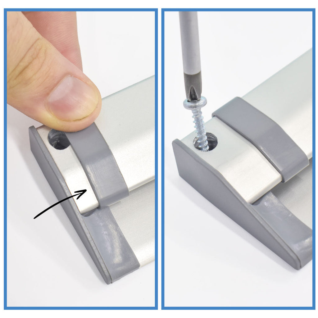 - Materiale: in alluminio estruso e rotelle in PVC Facile inserimento di fogli multipli anche in formati differenti.Completa di biadesivo sul retro e possibilità di appenderla con le viti