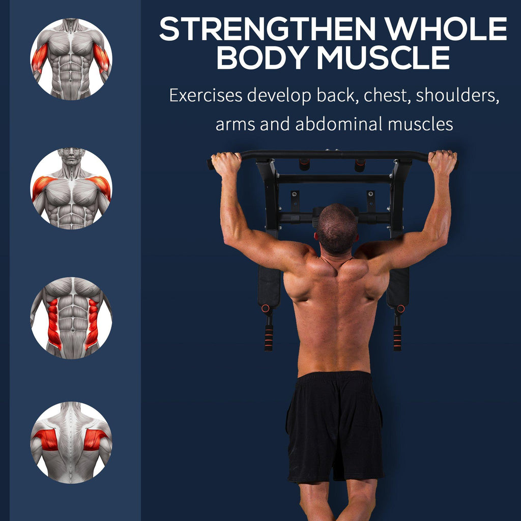 - ALLENA LA PARTE SUPERIORE DEL CORPO: Questa sbarra per trazioni può essere installata in due modi, ed è progettata per eseguire esercizi come pull-up, sollevamento delle gambe, parallele e molti altri.