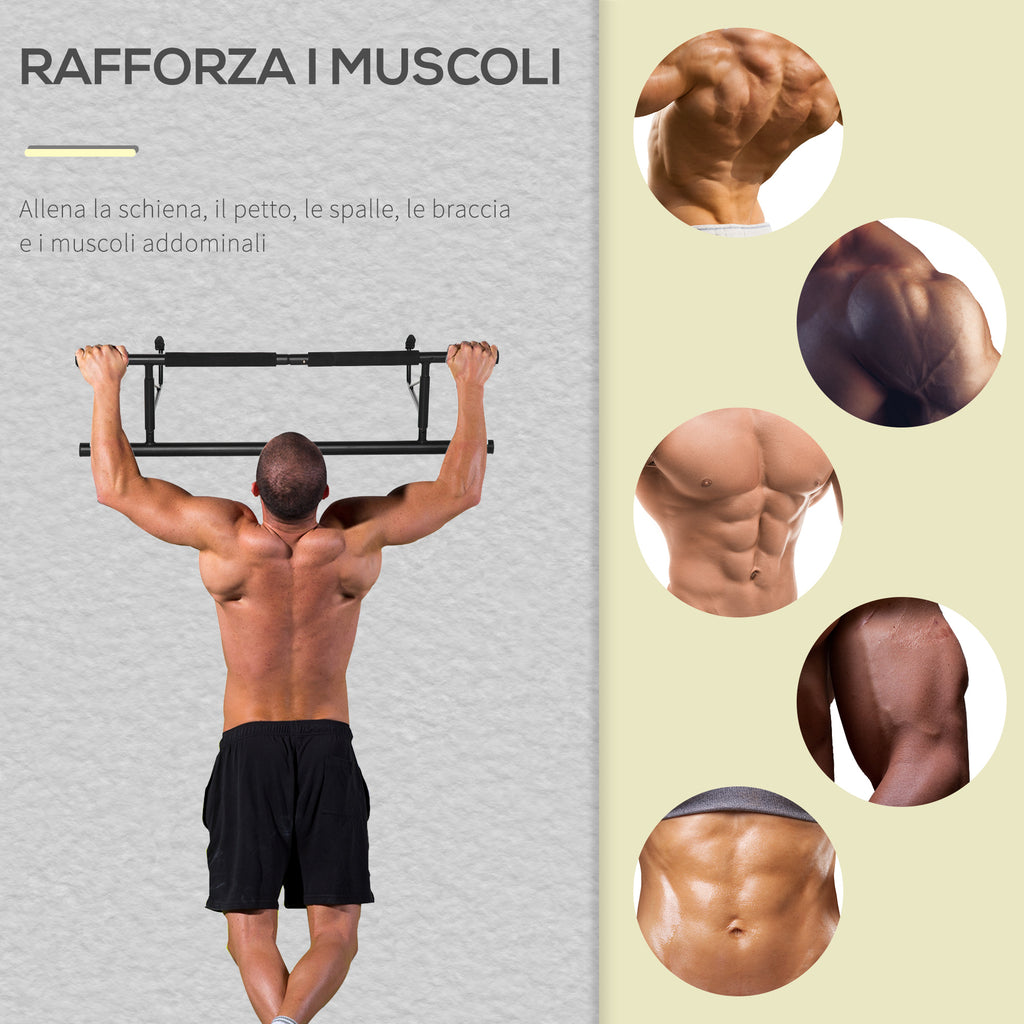 - PUNTI DI PRESA IMBOTTITI: La barra per trazioni ha impugnature in gommapiuma antiscivolo per proteggere la pelle dei polsi e dei palmi, e assicurarti una presa ferma.