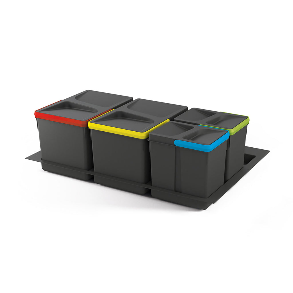 Base 3 Posti per Pattumiera Differenziata per Cassetti Cucina 80 cm in Plastica Emuca Grigio