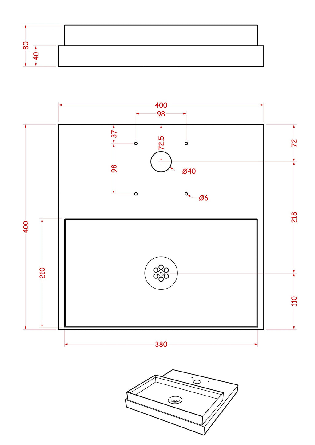 - Dimensioni: L 40 x P 40 x H 5 cm