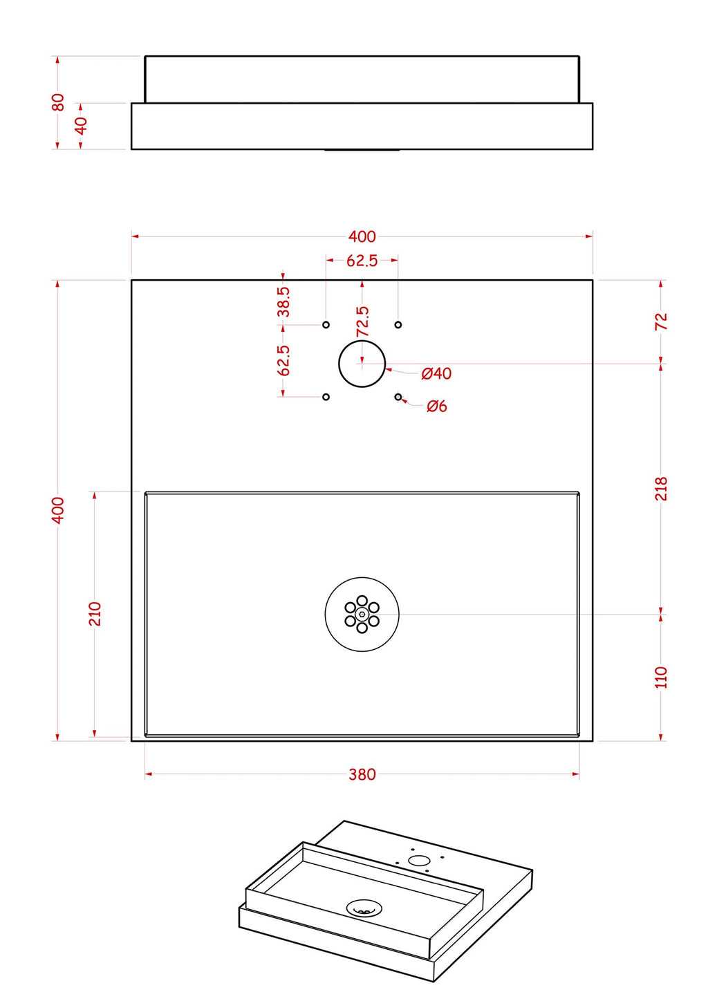 - Dimensioni: L 40 x P 40 x H 5 cm