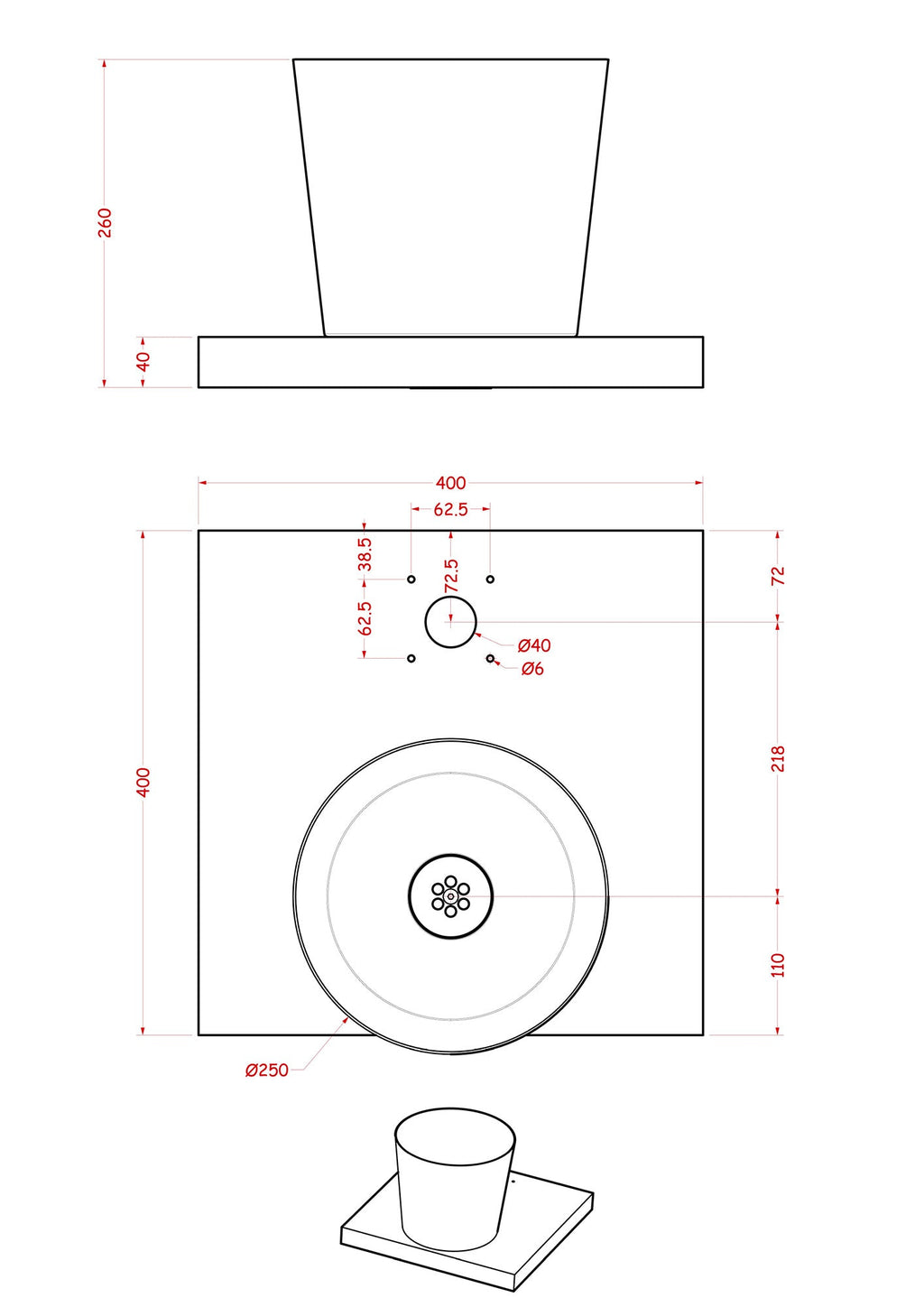 - Dimensioni: L 40 x P 40 x H 5 cm