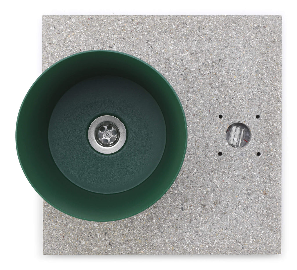 Base con Vaschetta per Fontane con Ghiera Piccola 40x40x5 cm in Cemento Belfer 42/BSE/4 Verde