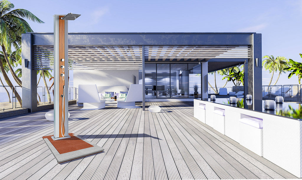 Base per Doccia da Esterno 75x97x4,3 cm in Caffè e Grigia